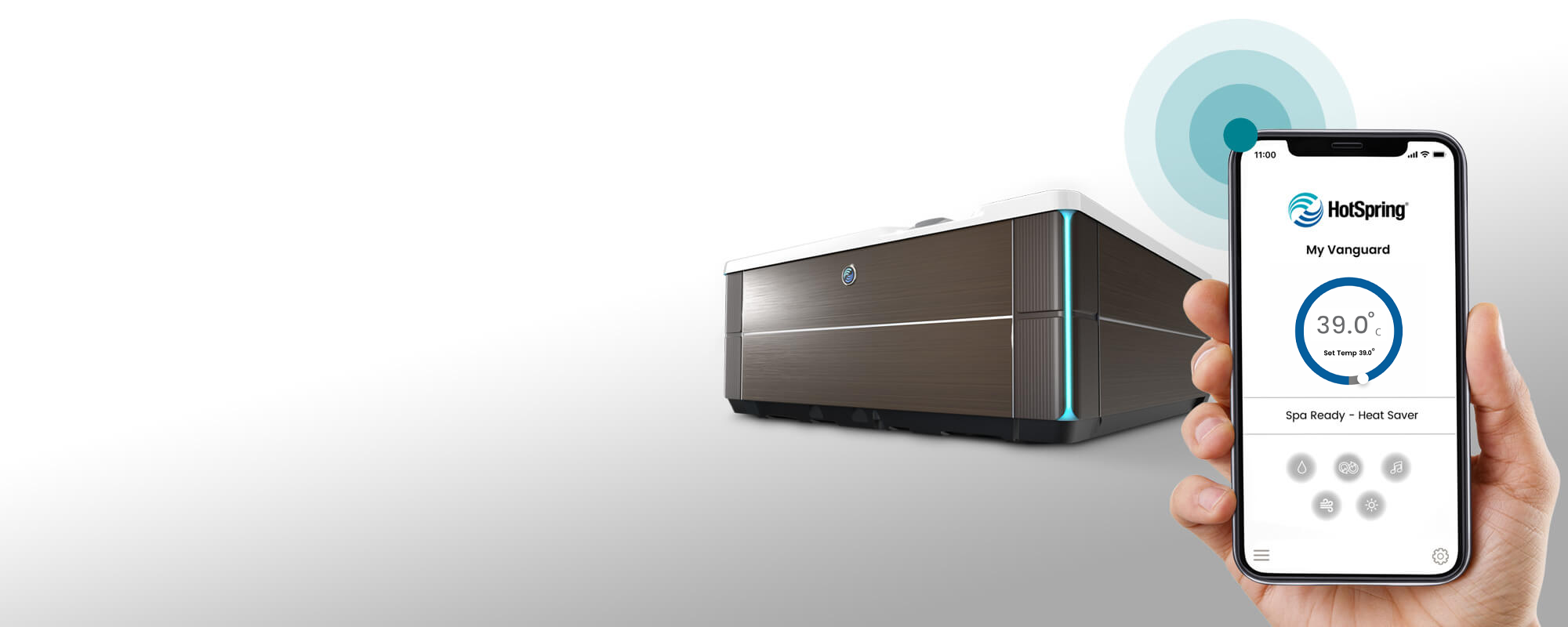 Izmantojot Connected Spa Kit, lietotne Hot Spring Spas ļauj kontrolēt un uzraudzīt savu spa jebkurā laikā, praktiski no jebkuras vietas. Sekojiet līdzi spa statusam, mainiet galvenos iestatījumus, pārvaldiet instalētos piederumus un iestatiet pielāgotus brīdinājumus. Un dariet to visu ērti no sava mobilā tālruņa.